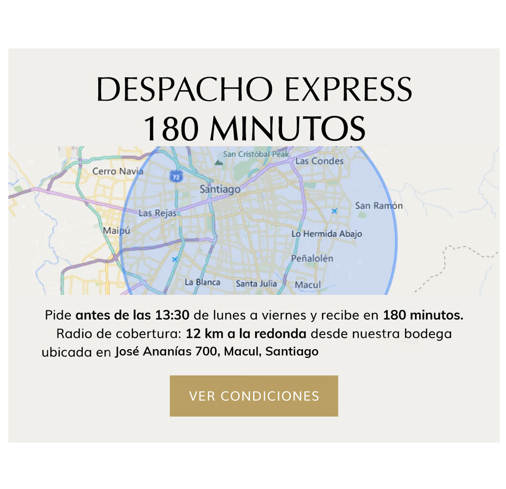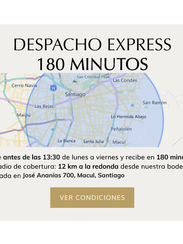 • Disponible para direcciones dentro de un radio de 12 km desde nuestra bodega en José Ananías 700, Macul.