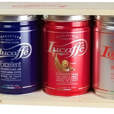 Caja de Madera Lucaffe con 4 Latas de Grano Molido 250grs