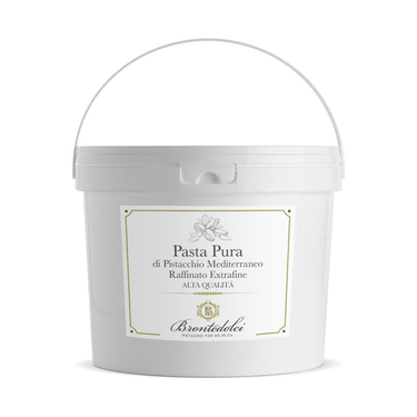 La “pasta base de pistacho” de Brontedolci es un producto semiacabado profesional que no es una crema untable dulce, sino una base concentrada y pura para ser utilizada como ingrediente en la preparación de helados, cremas, glaseados, productos horneados y otras recetas para profesionales.